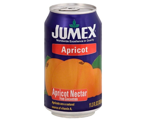Description When you're looking for a guilt-free sweet treat, pick up a can of Jumex Apricot Nectar. You'll love the unique fruity taste that comes from real fruit puree, and you can feel good about enjoying a drink with no trans fat, saturated fat or cholesterol. Try it straight from the can, poured over ice or mixed up in an apricot nectar cake.Contains: Does not contain any of the 8 major allergensMay Contain: Does not contain any of the 8 major allergensStore: In a Dry location at Room temperatureForm: LiquidState of Readiness: Ready to drinkPercentage juice content 1: 100.0Package type: Individual item single servingExterior container material: MetalNet weight: 11.3 ouncesPackage Quantity: 1Beverage container material: MetalApricot fruit juice drink from concentrateNaturally free of saturated fat, trans fat and cholesterolLow sodiumApricots are a natural source of vitamin A Estimated shipping dimensions: 2.63INCH X 4.86INCH X 2.63INCH DPCI : 203-14-0510 UPC : 076406021505 TCIN : 50689586 Estimated shippimg weight: 1.238POUND