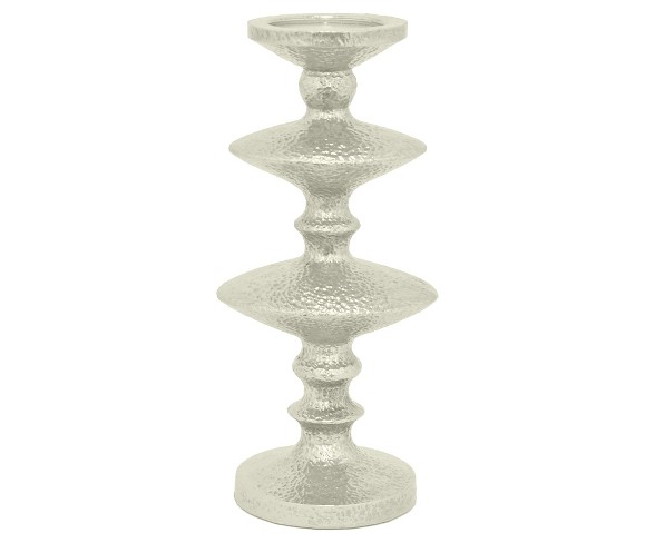 Description Give your stylish gatherings a timeless, sophisticated look with this Silver Candle Holder from Three Hands. Crafted in solid resin with a unique texture and a stacked cylinder shape, this candle holder draws instant attention while adding elegance wherever it's displayed. This wonderful accent piece in a silver finish will bring a beautiful decorative feel when placed on your dining table, mantel or entryway display.Material: ResinDimensions (Overall): 15.0 inches (H) x 5.75 inches (W) x 7.5 inches (D)Silver candlestick holder perfectly fits your favorite pillar candleResin finish with a unique texture draws instant attentionBeautiful cylinder shape adds a touch of sophisticationPerfect for your mantle, dining table or entryway display Estimated shipping dimensions: 8.0INCH X 8.0INCH X 20.0INCH DPCI : 054-00-0535 UPC : 726674165394 TCIN : 50624026 Estimated shippimg weight: 5.0POUND