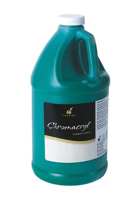 Description Deep green acrylic paint will wash out with detergent even after it has dried and are water-resistant on paper, canvas, wood and more. Deep green Capacity: 64 oz. Water-resistant on paper, canvas, wood and more Recommended ages: 15 years and up Non-toxic Compatible with all acrylic mediums Won't chalk, flake, peel or separate Specifications Color Family : Green Painting Type : Acrylic Paint Recycled : Yes Brand : Chromacryl Customizable : No Weight : 0.99 lbs. per Each