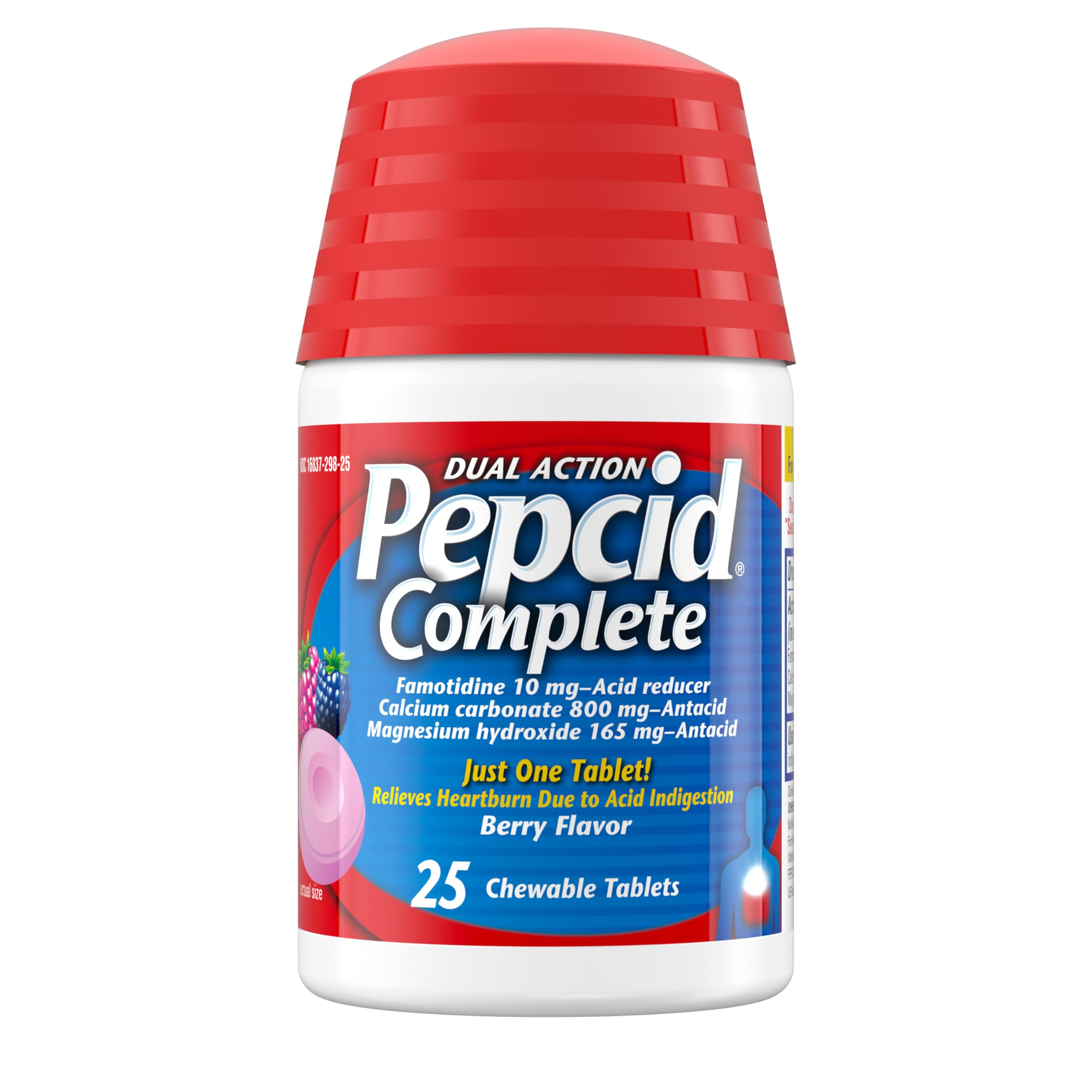 | Included Components | Pepcid Complete Acid Reducer + Antacid Chewable Tablets, Heartburn Relief, Berry, 25 Count |