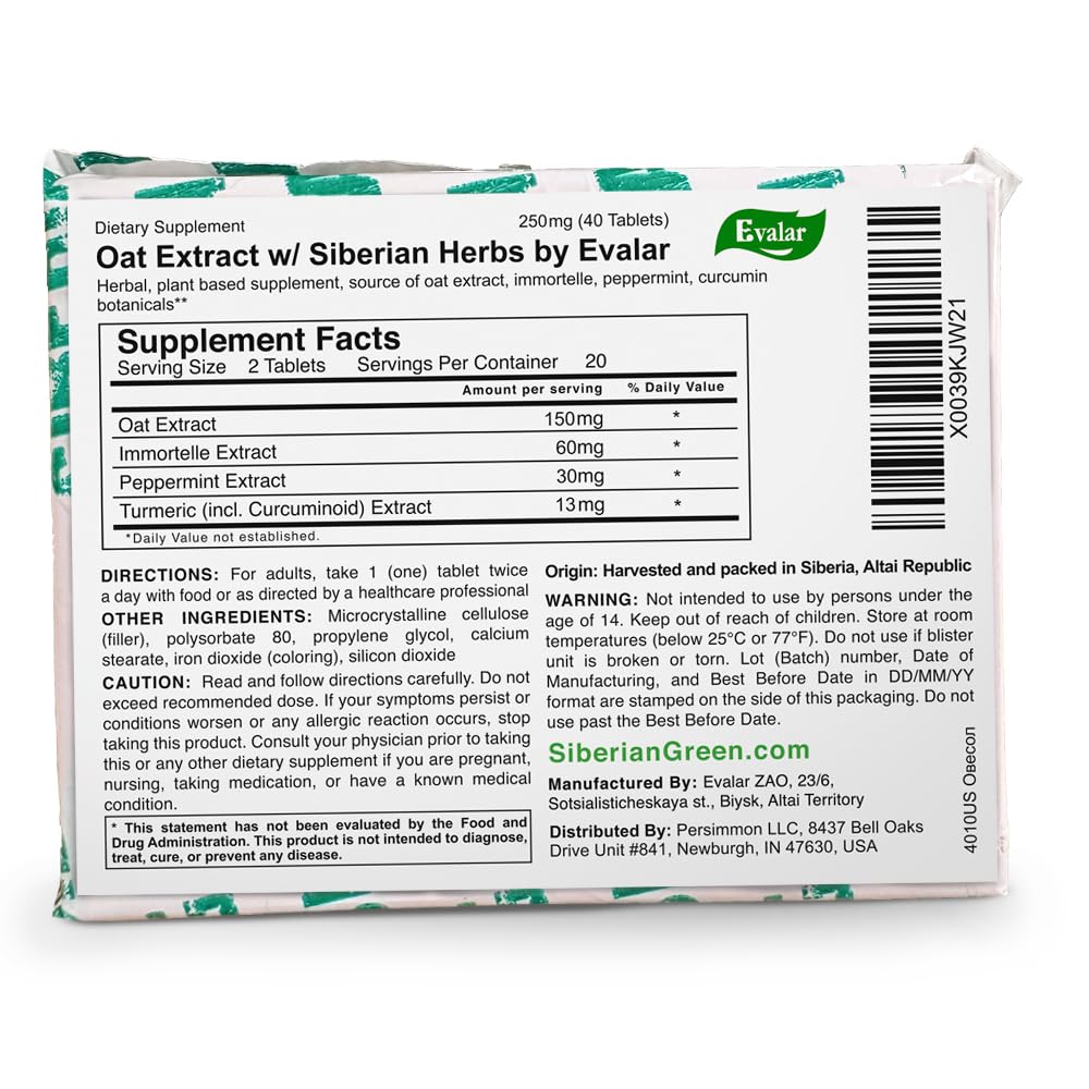 EvalarOat Extract Immortelle Turmeric Herbs Ovesol Siberian offers a unique blend of wild-harvested oat and Siberian herbs, sourced from the Altai Golden Mountains. Each of the 40 tablets is manufactured under GMP standards, ensuring high quality and efficacy for your wellness journey.