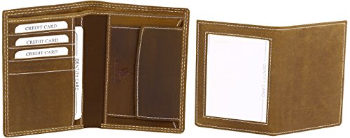 Leather wallet with plenty storage space from oiled hunting leather with removable card compartment!Features- 7 credit card slots- 5 ID slots- 2 note compartments- Coin compartment with press stud Dimensions9,5 cm width13 cm height