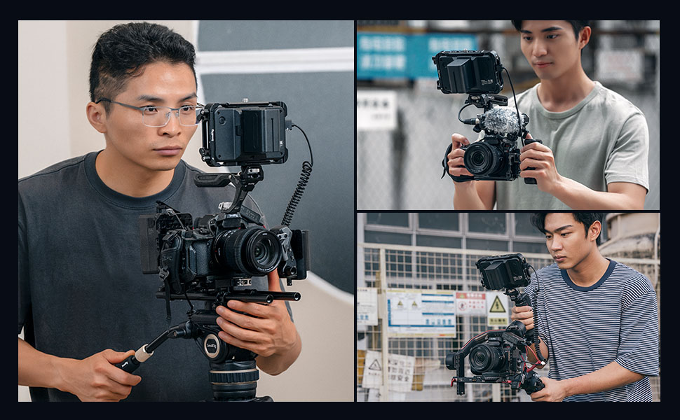 So far, SmallRig’s cage works well mounting my S5 iix, Blackmagic video assist, SSD card, and Small pRig fluid head. It’s compact enough, that I hardly notice it when I’m just using the camera with no attachments. I can reach all of the camera controls easily, and it does not interfere with just photography.