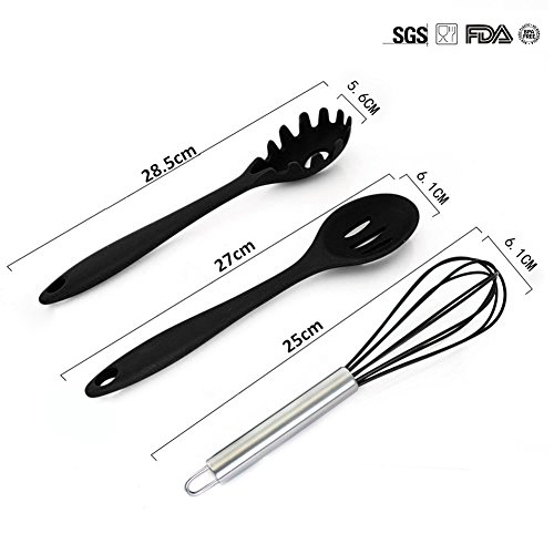Welcome to LUCKYSTART88 Amazon store.Thanks for your support and trust! You are my Lucky start!. Material: the FDA food grade silica gel FDA Grade, BPA Free Silicone coated cooking utensil set. Brand New and High Quality. Stain resistant and odor resistant. Heat resistant temperature:-40℃~+230 ℃ (-40 °F~446 °F) Comfortable and Durable,Ergonomic handles and perfectly shaped heads,Hole for easy hanging storage. Apply: microwave oven, oven, dishwasher cabinet, steamer. Boiled disinfection,BBQ Product features: environmentally friendly, nontoxic, non-stick, durable, safe, easy to clean Non-stick cooking utensils: Designed to be perfectly compatible with nonstick cookware. Will not scratch your expensive non-stick cookware. Perfect creative gift ideas - Valentine's Day Gifts ,Wedding present, Home, Birthdays Gifts, Mother's Day. Premium Silicone Kitchen Utensils Set (10 Piece) ,includes: • 1 xTurner : 29.5X8cm • 1 x Large Spatula : 28X5.6cm • 1 x Small Spatuula :21.5X4.1cm • 1 x Basting Brush: 21X3.3cm • 1 x Whisk: 25*6.1cm • 1 x Pasta Fork: 28.5X5.6cm • 1 x Spoonula: 27X6.1cm • 1 x Tong: 27X4.1cm • 1 x Slotted Spoon: 27X6.1cm • 1 x Ladle : 28X8.9cm NOTE: 1. Because of the size measurements are handmade, so there may be 0.3-1CM error 2.Please understand because of the light irradiation or computer display difference, so I can't guarantee photos and real color is 100% the same. 3.Before first use, you need to use clean water to wash it and then place in hot water disinfection. Feedback 1. If you satisfy with our service and products, please leave positive feedback, we appreciate it. 2. Please contact us before leaving any negative or neutral feedback. We will work with you to solve any problems for you.
