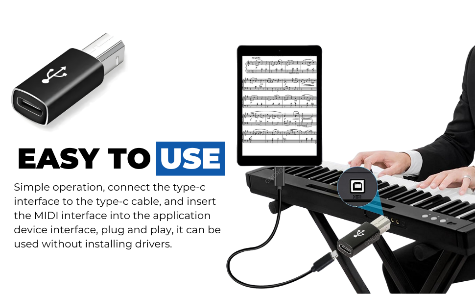 The ONCRO USB-C to USB 2.0 B MIDI Adapter delivers fast 480 Mbps data transfer with plug-and-play ease, enabling seamless connection between USB-C devices and MIDI instruments or printers. Compact and driver-free, it’s designed for professionals who demand reliable, universal compatibility across laptops, tablets, and musical gear.