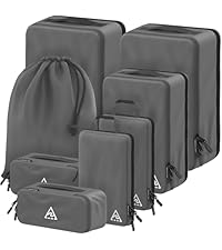 The Well Traveled 8-Piece Deluxe Compression Packing Cubes feature a patent-pending HybridMax double capacity design that maximizes luggage space. Crafted from extra-strong, water-resistant satin twill with reinforced stitching and smooth 2-way zippers, this set offers durable, stylish organization for all your travel essentials. Available in small, medium, and large sizes with a lifetime satisfaction guarantee, these cubes transform packing chaos into effortless order.