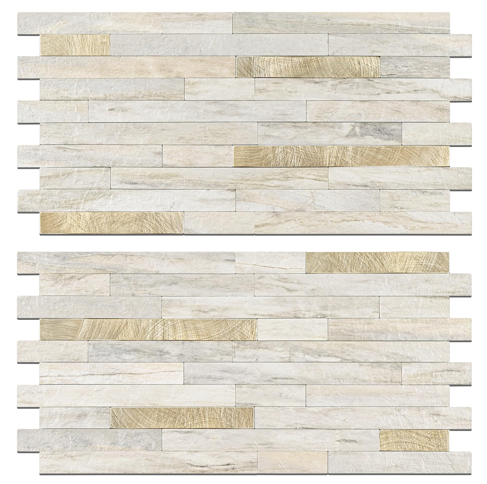 STICKGOO 2 Sheets Peel and Stick Backsplash Tile, Stick on Backsplash for Kitchen and Bathroom, Sunny Beige Look PVC Mixed Metal Gold Self Adhesive Wall Tiles