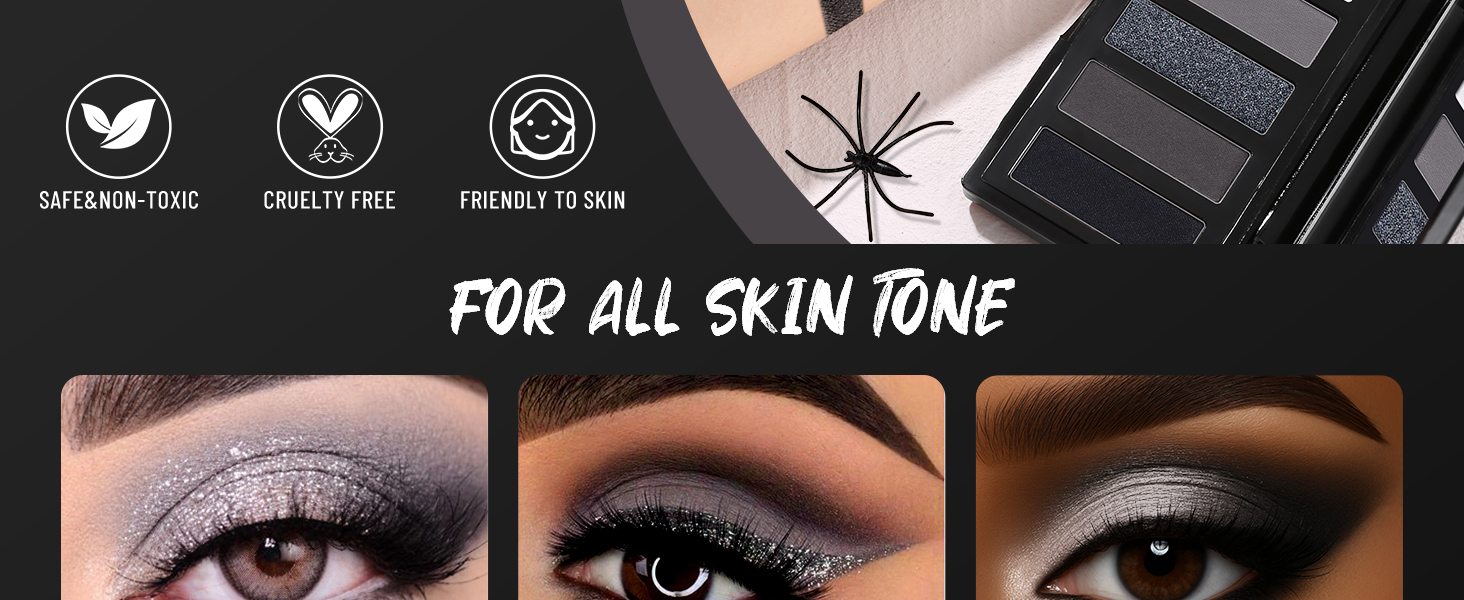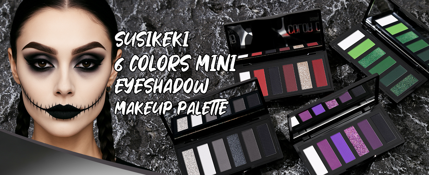 This Black Eyeshadow Palette offers six highly pigmented, cool-toned shades ranging from shimmering silver to deep matte black. Designed for bold, alternative makeup styles like goth and Halloween looks, it features a waterproof, smudge-resistant formula with smooth blendability. Compact and travel-friendly with a built-in mirror, it’s perfect for creating dramatic eye makeup anytime, anywhere.