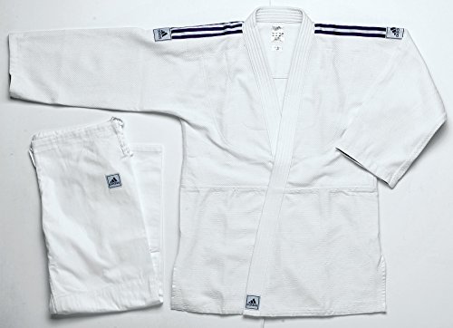 Designed for beginners. Three stripes on shoulders. • 80% Cotton/20% Polyester, Single Weave. • Size: 0-7 • Belt is not included.