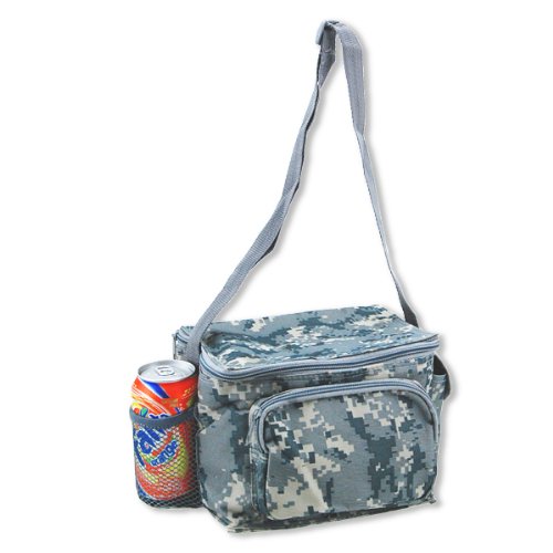 - Rugged insulated 6-pack - lunch cooler in ACU digital camo with extra storage