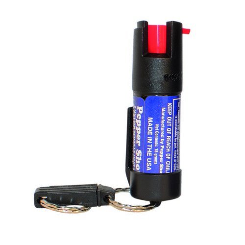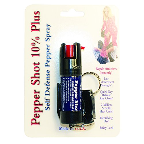 This 1/2 oz. Pepper Shot Pepper Spray is your portable defense solution. Its compact size and built-in key ring makes it convenient to carry on your person at all times. It also comes equipped with a locking actuator to prevent accidental usage, making it safe to have on you. However, don't be fooled by its tiny size. This 1/2 oz. Pepper Shot Pepper Spray contains 10% OC (Oleoresin Capsicum) and produces 2 million Scoville Heat Units. Its effectiveness is further enhanced by using fine grain pepper that is far more efficient than coarse grain pepper. This pepper spray not only causes pain in your attacker, it will swell up the mucous membranes and veins in the eyes, making breathing difficult and opening the eyes impossible. This temporary damage will last for 20-30 minutes. The pepper spray will also release an invisible UV dye that will mark the assailant and aid in identifying him/her after the attack. Each canister contains five one-second bursts and sprays up to 8 feet. This product has a 36-month shelf life and is made in the USA.