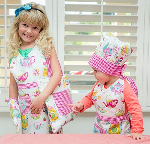 Your little chef will quickly decide that helping out in the kitchen is just her 'cup of tea' when she gets cooking in this precious apron from Handstand Kids. The colorful teapots are so fun and yet still a little bit... grown up - just like your big girl! The pink gingham check accents add just enough sweet charm to make this an apron that will delight every budding baker. Highest quality apron is constructed from durable 100% cotton and is machine washable for easy care. Child's apron measures 25" long x 22" wide (excluding straps) and is sized for most children ages 5 to 10 years.Handstand Kids cookbooks and accessories are the result of the founder's deep desire to introduce children to international foods in a fun and hands-on way. Handstand Kids cookbooks are the perfect recipe for kids to learn about the people, places and language of a new country while also learning to create their own versions of traditional international dishes. Handstand Kids kitchen accessories include true kitchen quality tools that are sized just right for children as well as aprons for everyone who wants a look that's as beautiful as the dishes they are creating! Join Handstand Kids in bringing international flare mixed with the traditional comforts of home to your children!