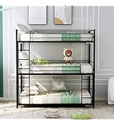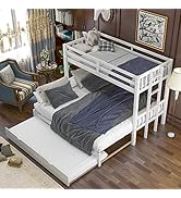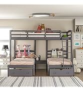 The Flieks Triple Bunk Bed combines a full bed over two twin beds to comfortably sleep three people while optimizing vertical space. Crafted from solid pinewood with iron alloy bolts, it offers a sturdy, wobble-free frame with safety guardrails and an angled ladder. Featuring three built-in pull-out drawers, it provides smart storage without needing a box spring thanks to durable mattress-supporting slats. Ideal for large families or shared rooms, this modern, space-saving bed is backed by responsive customer service and a 1-year warranty.