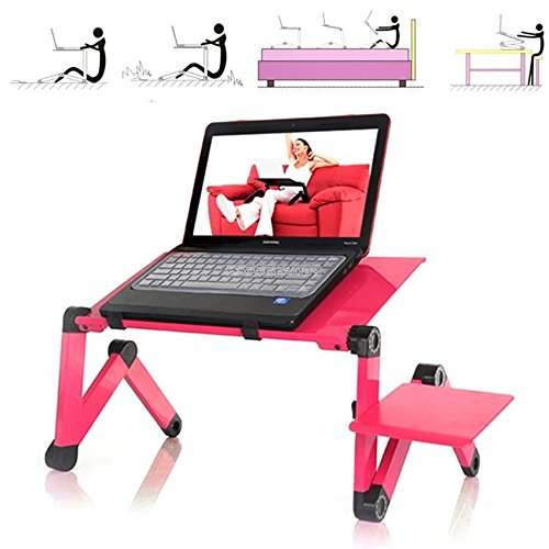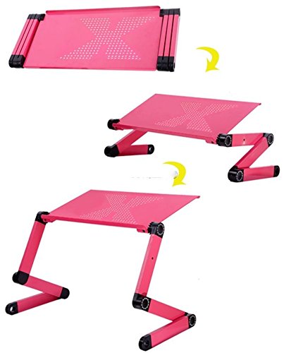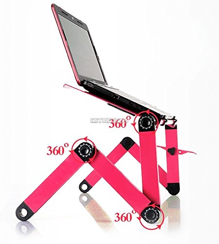 This is a magic laptop desk.360° foldable ,you can use it to Enjoy the fun of the Internet in bed, sofa, table, carpet, lawn. You can used as laptop desk, writing desk, Sketchpad, dinning table, Flower Stand, etc. As soon as you adjust the knob in the leg of the desk to different height and angle you need. Made with strong magnesium and aluminum alloy achieve the high quality and compact design one You can install a fan with the shape Ventilation holes which provide strong air flow to dissipate the heat from bottom of your notebook. Not only a table but also a cooler.But the fan not included Each folding leg has 3 knobs which can adjust any height and angle you need. The 360°revolve provides the high flexibility just as human. Automatically fixed joints and High intensity ABS joints, easy to conduct precise angle and height adjustment
