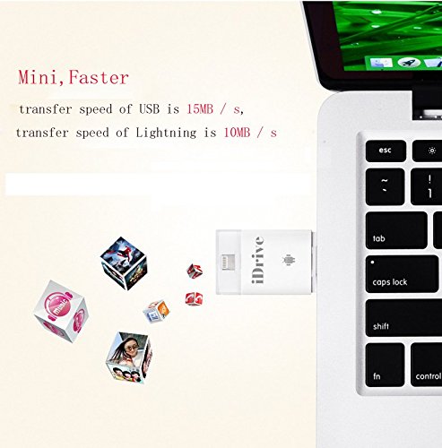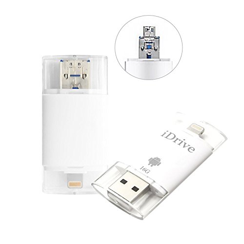 Details: You can store more of the latest HD movies, take thousands of photos, grab more seasons of favorite TV shows, listen to more podcasts, and never worry about using up more space on your idevice without using iTunes or iCloud. Free & Strong APP: install the free APP "iDiskk Pro". You can use your idevice to stream movies and listen to podcasts stored on the flash drive directly, saving valuable spaces on your devices. Portable Size: At a fraction of the the size and weight of an iPhone,it is the best companion for your Apple devices. Take it with you everywhere to instantly free up more space, letting you enjoy more content and have more freedom. Compatible with: iPhone 5/iPhone 5c/iPhone 5s/iPhone SE/iPhone 6/iPhone 6s/iPhone 6 plus/iPhone 6s plus/iPhone 7 iPad Air 2/iPad mini 2/iPad mini/iPad(4th generation)/iPod touch (4th generation) & other iOS (iOS 7.1 or higher) devices with Lighting Port Samsung Galaxy S7/S7 Edge/Note5 and other Android Devices Mac & PC Computer Package Included 1 x Flash Drive Wide Compatibility with Popular-format Format supported Audio: AAC, AIF, AIFF, CAF, M4A, MP3, WAV, 3GP Video: AVI, M4V, MKV, MOV, MP4, MPG, MPV, RM, RMVB, TS, WMV Image: BMP, CUR, GIF, JPG, PNG, TIF, TIFF, XBM Document: DOC, DOCX, PPT, PPTX, XLS, XLSX, KEYNOTES, NUMBERS, PAGES, HTML, PDF, RTF, TXT Other : VCF, ZIP Please Note: 1) To ensure the best connection, please remove your phone case if necessary. 2) Cannot transfer iTunes Music and Video files to flash drive nor download by the 3RD-party APP, as they are DRM (Digital Rights Management) protected. 3) 1GB=1,000,000,000 bytes. Actual user storage could be slightly lesser.