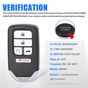 The Keymall Smart Car Key Fob is a keyless entry remote designed for Honda Accord models from 2018 to 2021. It features 5 buttons for easy access and comes complete with a battery, chip, remote board, and an uncut emergency key. Ensure compatibility by matching the FCC ID and OEM part number before purchase, and have it programmed by a qualified locksmith for optimal performance.