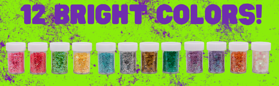 SCS Direct Assorted Iridescent Colors and Shapes Maddie Rae's Slime Sequin Set - Set of 12 (20 g EA)