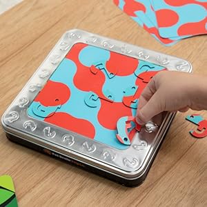 The Fat Brain Toys One in a Chameleon is an educational matching game designed for kids aged 6 and above. It features 8 magnetic chameleons that hide within 12 double-sided challenge cards, all stored in a sturdy tin case, making it ideal for travel. This game promotes critical thinking, creativity, and enhances visual-spatial skills.