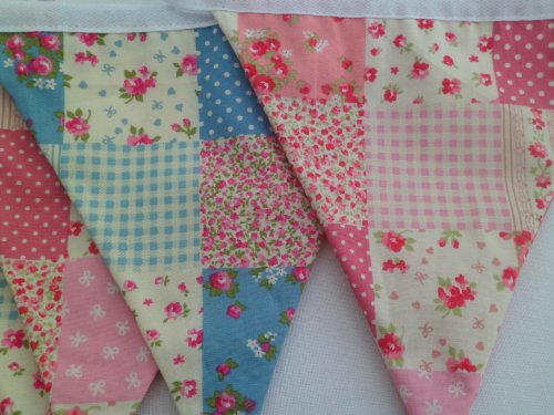 Double sided Pink and Blue Patchwork Mix 10 pennants 4m long