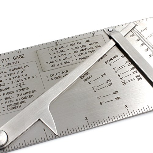 Item Name: Pipe pit welding gauge gage Test Ulnar Weld Pipeline Concave Inspection ruler List Included: Pipe pit welding gauge WSG-01017 1set More Details: application: Pipe Pit Gauge Range os 0 to ½" in 1/64 & .020 increments Arm can be locked in place at any dimension All Stainless Steel Gauge fits in shirt pocket and comes with pocket protector Has handy formulas on front and decimal equivilents on back