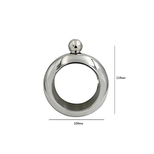 Feature: 1Great for hiking, traveling, hunting and mountaineering. 2Spout Diameter: 12mm 3Capacity: 100ml/ 3.5Oz 4Material: Stainless Steel 5Type:Hip Flasks 6Made of Stainless steel, very sturdy and durable. 7With an attached corrosion-proof screw-on cap. 8This flask bangle bracelet can be multi used in your life 9Size: Outside the body diameter 100MM, inner diameter 69MM, pot high 119MM, thick 36MM, wall thickness 0.8MM