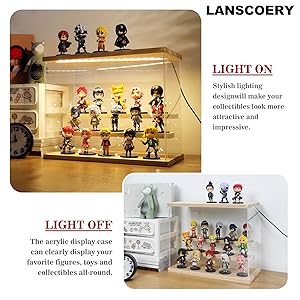 The LANSCOERY Clear Acrylic Display Case is a stylish and protective showcase designed for collectibles, featuring a durable wooden base and warm LED lighting. Measuring 11.8x4.3x7.9 inches, it offers effortless assembly and comes with essential accessories, making it an ideal gift for any memorabilia enthusiast.