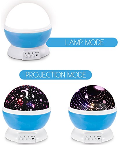 SPARK KID'S IMAGINATION: Project a map of colorful stars onto your ceiling and walls with this new starlight. Base on rotating, it creates a larger and more brilliant light show for your viewing entertainment. This is great for arousing curiosity in the kids for universe and astronomical science.