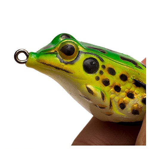 The iBait 5pcs Topwater Soft Plastic Swimbait Lures are 2.17-inch, 0.3oz hollow rubber frogs featuring dual hidden barbed hooks and bright multicolor silicone skirts with 3D eyes. Designed for lifelike walk-the-dog action, these weedless lures excel in freshwater environments like lily pads and weed beds, targeting bass, snakehead, and other predatory fish. Each pack includes five durable, soft plastic frogs backed by responsive customer service.