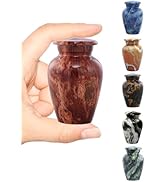 My mother passed very suddenly and unexpectedly, and I ordered this small keepsake urn in the green marble pattern so a little of her cremains can be interred with her parents out of state, while her large urn rests beside my father. This small keepsake urn is very pretty, and very high quality. It is metal, with a secure screw on lid. It is very high quality, and it is a very, very reasonable price. (Mama always loved a bargain!) the pattern is very realistic looking, so it truly looks like green marble. It is about 2 inches tall, and heavy duty. It arrived the next day, as promised. I am very satisfied that this little urn honors my mother. I wish we had also ordered the large urn for Mama from this company via Amazon! The purchase of this small keepsake urn was so drama free and smooth, which contrasts sharply with the absolute nightmare our family is still experiencing around the purchase of Mama’s large urn, which we stupidly purchased through the independent dent non-Amazon website urns.com. The urns.com purchase was severely flawed and damaged upon arrival, and that company refused to replace it or work with us to get an undamaged replacement or refund. Customer service at urn.com told my family that they did not intend to stand by their product, and not to “bother” them again regarding the damaged urn they shipped. Order from this company on Amazon, and avoid urns.com at all cost! You will be treated with respect and dignity by this Amazon seller, unlike through urns.com, I promise, based on our family’s experiences.
