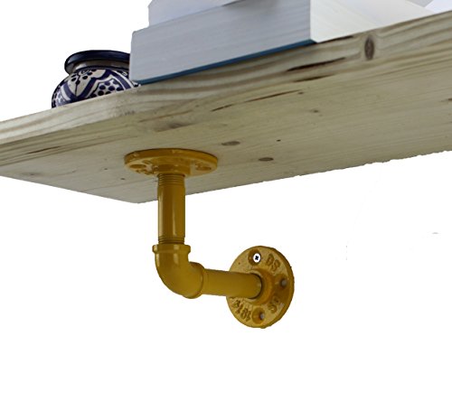 IRWOST - L'Original - Yellow straight stand. Easy to install. Steel and cast-iron support made of pipes and plumbing couplings. It will get your decoration a modern touch but still with an industrial and retro design. This support is perfect for your shelves, furnitures, bookends, table legs... Yellow epoxy finition. The design will perfectly fit for your living room, dining room, workshop, garage, restroom, bedroom... Make, customize, color your decoration !