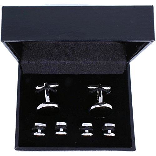 Onyx Black Cufflinks and Studs • Matching Cufflinks & Studs• Supplied in Presentation Box• Black Enamel Inlay Boxed set of Four polished metal onyx black shirt studs with matching cufflinks in an attractive presentation box from Dickie Bows. The ideal accompaniment to any formal dress shirt, these classic style shirt studs are 8mm wide and have a onyx black black enamel inlay. The shirt studs feature a stub fit fastening and come with matching twist lock polished metal cufflinks. This onyx black cufflinks & shirt studs set comes in an attractive presentation box and makes an ideal gift.