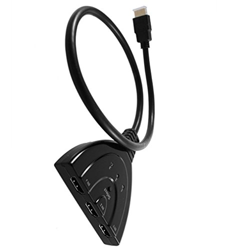 CNMODLE Costech 3 in 1 Output HDMI Splitter HUB 3 Port 1080p Plug and Play HDMI Auto Switch with Pigtail Cable Support High Speed for HDTV/projector/computer Monitors (Black)Features:Connectors:3 HDMI Inputs1 HDMI OutputBuilt-in LED IndicatorsMaximum Cable Length Supported: 65 Feet (20 Meters) (If with 24AWG Cable)Compatible with HDMI High Speed, Full HD 3D, HDCP 1.2Supported Audio Formats: LPCM, DOLBY AC3, DTS 7.1, Direct Stream DigitalSupported Video: 24bits, 36bitsSupported Resolutions: 480i, 480p, 576i, 576p, 720p, 1080i, 1080pVideo Bandwidth: 6.75Gb/s or 225MhzOperating Humidity Range: 5 to 90% no CondensationOperating Temperature Range: -15C to 55CAutomatically Switching to Active Peripheral or by Button2x Mounting Holes on SwitchSpecifications:Color: BlackTested OK with: Projector, Blu-ray Player, AV Receiver, Computer, LCD, Plasma, DLP TVItem size: 560mmNet weight: 106gPackage weight: 130gPacking content:1 x 3-port HDMI Switch