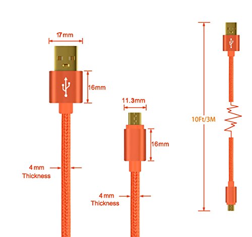 Micro USB 2.0 male to USB male neylon braided cable makes it easy for you to connect your device, such as smartphones, MP3 players, tablets, digital cameras, digital camcorders and more devices connect to your PC/Laptop for sync and charge, or connect these devices to a USB power adapter for charge only. [Gold-Plated Connectors] High-quality material gives you a stable connection and supports QC 3.0 fast charge, anti-corrosion gold plated connector for better signal transmission. [High Speed Data Sync] High Speed of Charging and Sync Data Cable, you can transfer the data and charge your device at the same time.(Additional Copper wire providing a much faster charging and data exchange than other seller cables). [Flexible & Durable] Durable braided layer and reinforced aluminum shielding designed to withstand stress, bends, twists, and pulls. Package includes: 2* 3Meter Micro USB Charging Data Cable Compatible With: Samsung Galaxy S7 S6 Edge S3 S4 S5, Galaxy A3 A5 A7 A8 A9 E7 J1 J3 J5 J7,Galaxy Note 2/4/5 Galaxy on7 on5, Mega, Grand; HTC One M8 M9+ X9, EVO, Droid DNA; Motorola ATRIX Moto G X, Droid; Google Nexus 4, Nexus 7, Nexus 10; LG G3 G4 Optimus, and other mirco USB Devices ect. Warranty Policy All CIKOO's products are guaranteed by One Year warranty and provide friendly support.
