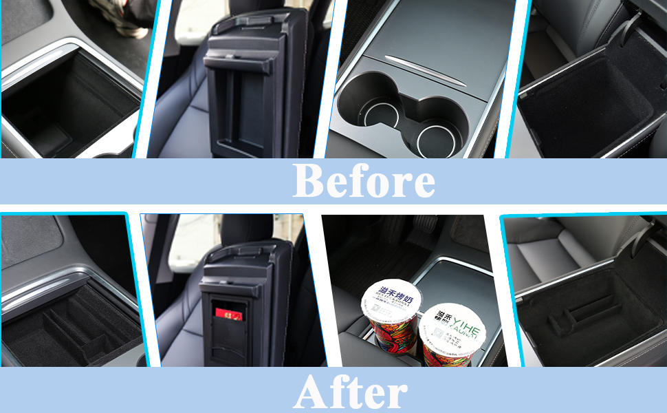 The Carwiner 5 PCS Center Console Organizer Tray is a custom-fit storage solution for Tesla Model 3 and Y (2021-2023). Crafted from scratch-resistant ABS plastic and soft rubber, it includes five components: a center console tray, armrest storage box, hidden cubby, cup holder, and sunglass holder. Designed for easy installation and enhanced organization, it secures your essentials while reducing noise and shock during drives.