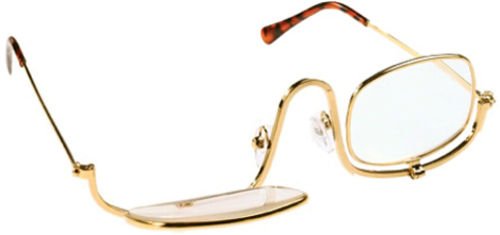 These MAKE UP MAKEUP GLASSES feature 2.0x magnification with impact-resistant glass lenses housed in a chic gold metal frame. Designed for precision eye makeup application and eyebrow shaping, they offer flip-down lenses for quick magnification and come with a soft pouch for portability. Perfect for anyone seeking flawless detail and style in their beauty routine.