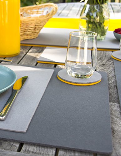 filzbrand Coaster made of Premium Wool Felt, rectangular, 11 x 11 cm, 3 mm thick, 4 Pieces/PackThis premium wool felt coaster by "filzbrand" is made of 100 % merino wool and is available in many different colours!The eco-friendly coasters will give your rooms a stylish touch AND will protect your furniture from scratches and moisture.It sizes 11 x 11 cm and is 3 mm thick.- Made in Germany!More information about our premium wool felt:--------------------------------------------------------------------Our premium wool felt sets an eco-friendly and colourful course to your home or garden.It is made from 100 % pure wool and features the absolute prime quality which could generally be acquired by purchase.The wool was cleaned and felted but still it feels soft after its production process.Felt isolates heat/coolness and could for example protect your table from the heat of a pot, if used as trivet.Are you focussing on high quality, longevity and eco-friendliness? Then you should clearly choose our unique product!