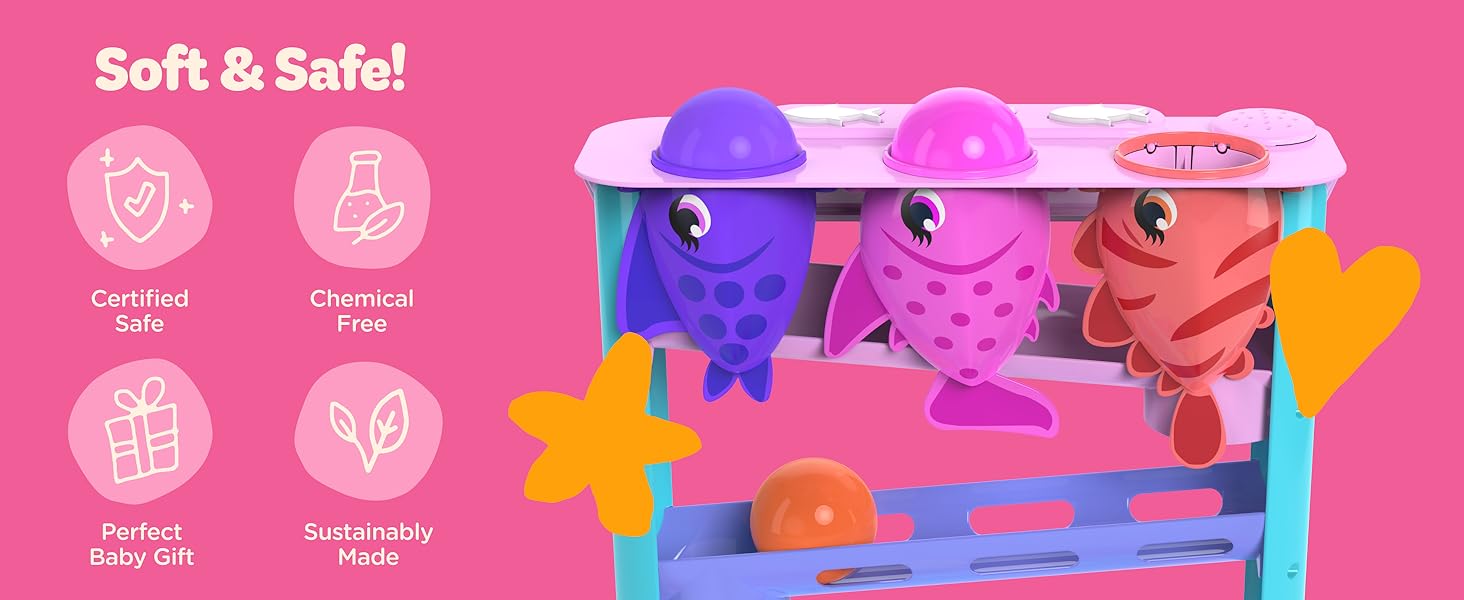 The Move2PlayFeed The Fish is an interactive toy designed for children aged 1 year and older, featuring three unique fish that engage with over 40 phrases and songs. This educational toy promotes motor skills, color recognition, and provides endless entertainment, making it a perfect gift for birthdays and special occasions.