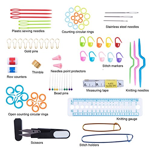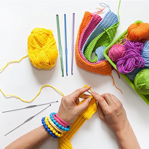 Features: 1.Mixed Aluminum Handle Crochet Hook Knitting Knit Needle Weave Yarn Set.Offers you all the different hook sizes you will ever need. 2.10 Aluminium Crochet Hooks: 2, 2.5, 3, 3.5, 4, 4.5, 5, 5.5, 6, 6.5mm. Approx 15cm in length 3.12 Silvered needles: Length Approx 12cm Size is random from 0.5mm to 2.7mm 4.Great Have all Crochet hooks in 1 Place. A must for any knitter or crocheter 5.Perfect gift for your family, mom, aunt, sister, daughter, friends, grandmothers and all crochet lovers! 6.Hooks that do not bend or kink ,cast using high quality materials.Crochet Hook Needles Kits get everything you need to Crochet your perfect pattern. 6.Easy to carry,organize all your hooks and accessories in one place. 7.Fantastic gift for anyone who is interested in arts and crafts. Whether they are new to crochet, or an experienced crocheter. 8. With the ergonomic handle design, you can crochet the day away with ease and extreme comfort. Package Included: 10 x Aluminum Hooks 12 x Silver Hooks 10 x Locking Stitch Makers 10 x Open counting circular rings 15 x Counting circular rings (3 sizes and each size 5pcs) 10 x Gold pins 10 x Bead pins 6 x Plastic Sewing Needles/Yarn Needles 3 x Cable Switch Knitting Needles 3 x Stainless steel needles 2 x Stitch holders (1pc 9 cm +1 pc 12 cm ) 2 x Row Counter 2x Stitch Needles Point Protectors 1 x Gauge Measure Ruler 1 x Thimble 1 x Measuring Tape 1 x Scissors 1 x Zip Leather Case Note: 1. All the parts will be put in the case by random, so the color of the tools will be different each time.