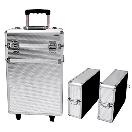 Overview: - This Beautify Professional Silver 4-in-1 Aluminium Cosmetics Trolley is perfect whether you need it for travelling, work, cosmetics, or hairdressing equipment- Multiple combination variations, the fast and uncomplicated reconstruction allows the user to alter the trolley with ease. Specifications:- Aluminum finished.- Delicate Metal corner perfect fit to box, comprehensive protect the case.- Comfortable telescopic style handle, durable wheels & locks.- High quality aluminium frame Robustly built with pull out trolley.- Reinforced aluminum alloy can stronger support the tray.- Lined with a velvet to protect any items inside- It can be simply converted between 4 tier case, 3 tier case and 2 tier case.Dimensions(approx)- Case dimension(cm):82.5×36.5×29.5 - Weight(kg):7.15Package Included:- 1*4 in 1 trolley Cosmetic case(cosmetic not included)