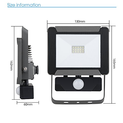 Chestele is one of the most innovative lighting manufactures with over 10 years experience in the UK lighting & electrical sector. Our mission is to provide you with remarkable dedicated service and high quality products for the UK market. Please contact us if you have any questions or queries regarding our products or service. Extra Long Life 25,000 hours LED life which equates to over 8 years life if used 8 hours a day Stylish & Modern Design Super Sleek New Generation Modern DRIVERLESS LED Floodlight. Enhance the look of your external area with this modern new generation floodlight Anti-Glare Diffuser Stops glare and offers a consistent high quality light spread through the anti glare prismatic clear polycarbonate diffuser Heavy Duty Impact Resistant Body Excellent protection against high impact from vandals or objects hitting the unit through a Aluminum die-casting body & diffuser. Smart and sensitivedetector Settings:LUX----switch to""SUN"", sensor works all 24 hrs; to 'MOON'the sensor works only at night.TIME----set thelight duration time, from 10 seconds to 10 minutes. SENS----adjustthe sensor's sensitivity to movement Detection distance: up to 12m(40 feet),Detection range: 180° twistable up and down, left and right. Technical Features Wattage: 10W LED Colour & Temp: Neutral White 6500K LED Life: 25,000 hours (over 8 years life if used 8 hours a day) IP Rating: IP65 Fully Waterproof Beam Angle: 120 Degree CRI >80. CE Approved & Fully Tested to all UK Regulations. BUY this floodlight today to keep your property or area safe, secure and bright!