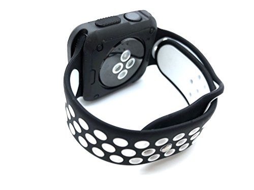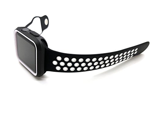 Replacement Silicone Nike Sports Strap for smart Watch Series 1/2 Item Description Designed specially for Series 1/2/3. More bands are available. Made by top quality TPU material, safe and soft, the Sport Band reduces weight and improves ventilation via row after row of compression‑molded perforations. The band comes with Lugs adapters on both sides, which lock onto your Smart Watch Precisely and Securely Light. Flexible. Breathable. Size M/L Suitable up to 210mm wrist Package included: Watch Band with Adapters Smart Watch and other accessories Not Included.
