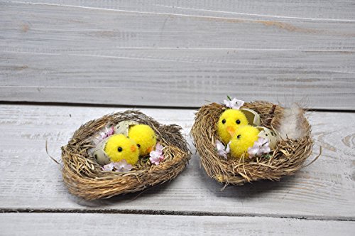 Set of 2 decorative chicken nests Rustic Easter decorations Easter table decoration Straw nest ◊ MATERIAL: wood sticks, straw, feather, plastic eggs, decorative chickens ◊ DIAMETER: 10cm = 4'' ◊ PRICE is indicated for 2 nests ◊ AVERAGE SHIPPING TIME: European countries incl. UK - 10-14 days Middle East - 10-14 days USA and Canada - 18-25 days Central and South America - up to 30 days Asia - up to 30 days Rest of the world - up to 30 days ◊ CUSTOMS AND IMPORT TAXES Buyers are responsible for any customs and import taxes that may apply. I'm not responsible for delays due to customs and national holidays. ◊ CANCELLATION POLICY We do not accept cancellations for seasonal items.