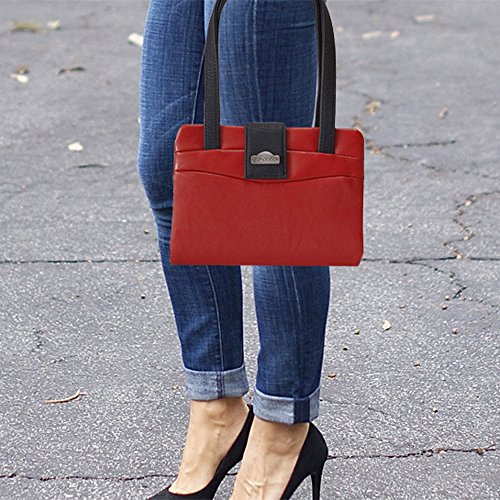 Created by the desire to always have what I need with me, this handbag purse style book cover carrier with double handles, has a magnetic clasp closure which adjusts to the thickness of your books - up to 5.5 cm thick. The unique round, auto adjustable inner support accommodates a variety of book sizes up to 21 cm high. Can be hardcover, paperback or soft cover. Red & Black design. Interior features a pen holder, integrated bookmarker, and a pocket size slot to hold your ID Card, credit card, business card or travel ticket. Measures 17.5 cm (6.9 in) Length x 21 cm (8.25 in) Wide x Depth adjusts to the thickness of the book - can go up to 5.5 cm (2.2 in). Ideal protection cover case for your most precious books such as your bible, your diary, your personal journal, your planner, your favorite book, your notepad, your drawing and sketching pad, etc... The fashion style for this hottie is so versatile! Whether you're a woman looking to be Legally Blonde chic, a stylish teenager or a young lady wanting to dress up pretty, this trendy little thing will do the trick! Makes a great gift... Practical with Style!