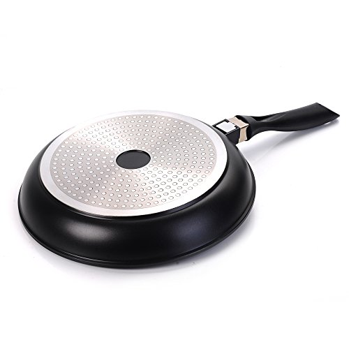 28cm / 11in frying pan. Suitable for use on: Electric, gas, ceramic, glass, halogen. Not suitable for use on solid or induction cookers. Ovensafe up to 260C. Dishwasher safe. Item weight: 956gOur classic, black coated Gourmet cookware is constructed from 3.5mm aluminium for even heat distribution. Includes silicone stay cool handles on all items and integral hanging loops on the saucepans, frying pans, sautepan & wok Ultra double layer non-stick coating to stop sticking or burning (and washing up is a doddle)Manufacture & supply innovative products and are passionate about quality and service.