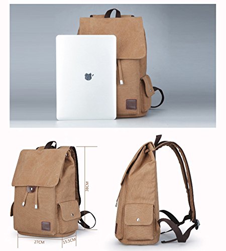 Specification:Material: canvasDimensions -- 38(H) x 27(W) x 15.5(D)CMFunction: backpack school bag outdoor sport bagStructure: side buckle pocket*2, front drawstring pocket*1, laptop pocket*1, internal zipper pocket*1Closure Type: zipperGender: boys and girlsNotice:The goods color may vary slightly from the online image due to monitor color settings. Please allow some dimension error due to the manual measurement.If you have any question, please feel free to contact me , thank you and have a nice day!