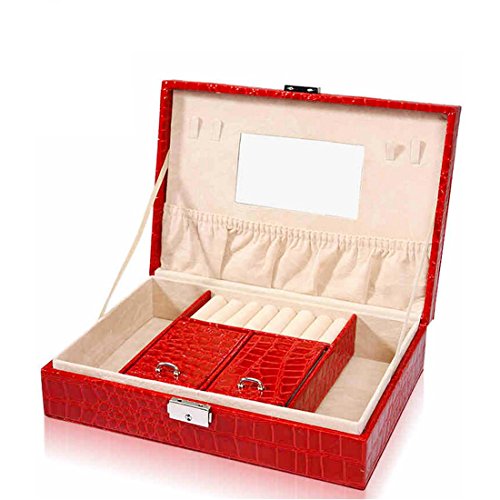 Meydlee Jewelry Box is of excellent layout, attractive appearance, multifunctional structure and fine workmanship. The jewelry organizer is finely designed and crafted with faux leather, high quality velvet and medium density fiberboard. With various compartments, the jewelry case is a great choice for storing your watches, rings, earrings, ear studs, necklaces, bracelets, cuff links, and brooches, etc. It's also a wonderful gift idea.