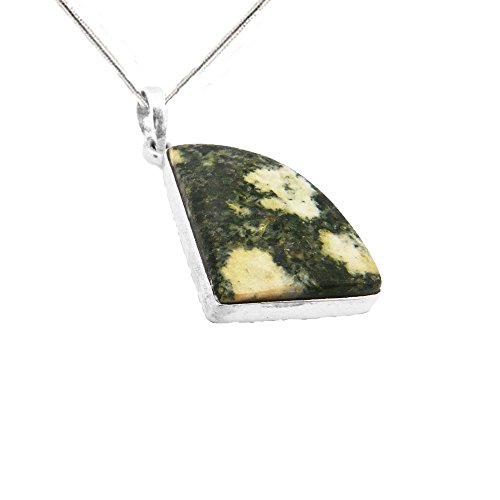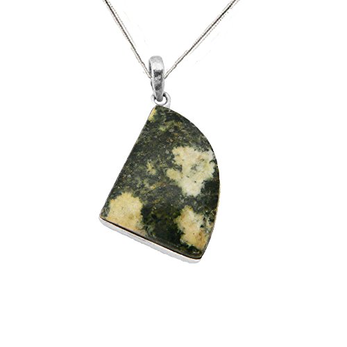 This fantastic Stonehenge Preseli Bluestone Pendant brings to its wearer the mystical magical allure of Bluestone jewellery. The distinctive green colour of the granite dolerite displaying creamy white crystals of quartz make this pendant truly unique. Formed in the Pembrokeshire's Preseli Hills these stones were used in the building of Stonehenge, the most mystical, magical, sacred circle of monoliths in the world set in the spiritual county of Wiltshire. It is believed that stones made of Bluestone form the inner ring of Stonehenge. Many people believe that these gemstones enhance your spirituality and help in connecting you to the magical world of time travel to the ancient cultures of Celtic Britain. The Pendant is best described as a segment of a circle, and it is set in a 925 Sterling Silver mount and measures 25mm by 20mm. It will hang down 35mm from the chain, a size that is not too petite or too large, and will look wonderful. Included is a charming 41cm/16" Sterling Silver Chain which has a Ring Clasp to keep your Pendant secure. Whether you are socialising or simply wearing the pendant for the thrill of it, it will demonstrate that you are a unique person by choosing such different and unusual jewellery. It will make a wonderful gift for your loved one's Birthday, Graduation, Confirmation, Wedding, Christmas, Mothers Day, or Valentine's Day. It will also be delivered in a smart gift box, so they will be "good to go" as that special gift. Preseli Bluestone is said by many to give focus, stability and connections to the Earth's energy. The gemstones perceived ability to utilise the mystical pathways of the body is an indication as to why our ancestors have attributed such powerful healing properties to Preseli Bluestone. A truly magical gift you would be proud to wear and to give as a gift to your loved ones.