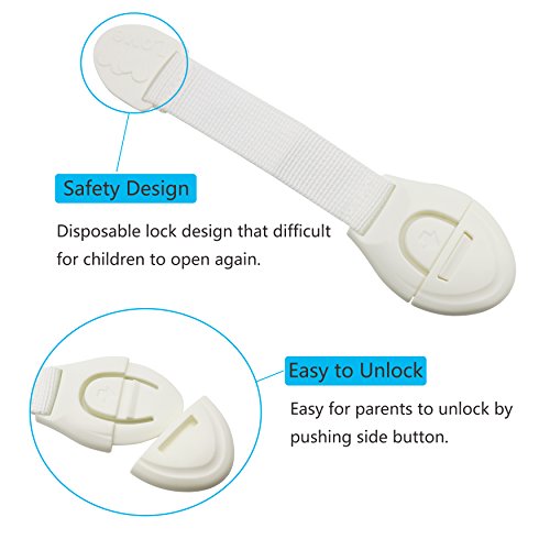 SAFETY COMES FIRST: When your little ones start taking their first steps, you know it's time to make your house a safe environment for them. With these smart safety locks you can effectively protect your child from choking hazard or from accessing any dangerous household items.With these amazing locks you can also keep your stuff neatly organized as your curious child cannot reach it! Use them to secure your wardrobes or storage cupboards and save yourself time from tidying up.Safety locks use:Need to lock a medicine cabinet, drawer of knives, Refrigerator door,garage door, oven, appliances, or toilet lid, so your child does not accidentally harm themselves or get into something dangerous.Operating:Unique buckle design,Easy to single-handed parents simple operation, adults easy to open, the child is difficult to open.EASY TO INSTALL & UNLATCH: Peel and stick-clean the area and then stick on and wait at least 24 hours before using.No tools required and no need for drilling.Safety warningThis product is not a toy. Do not install on a non-insulated oven. If the oven is not insulated and gets extremely hot when in use it will melt the product and can pose a hazard!
