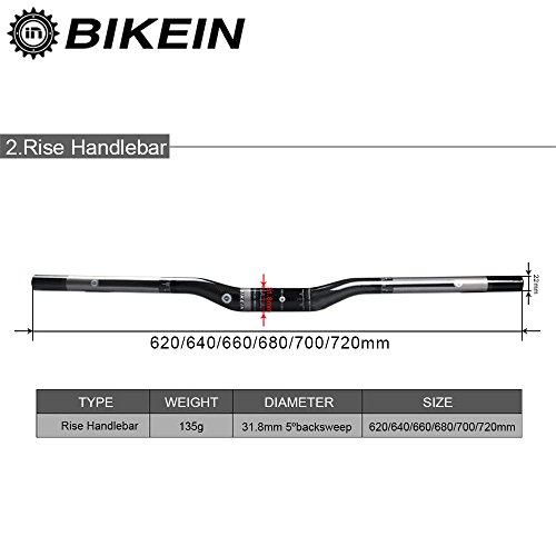 Material: carbon fiberColor: 600mm straight, 620mm straight, 640mm straight, 660mm straight, 680mm straight, 700mm straight, 620mm swallow, 640mm swallow, 660mm swallow, 700mm swallow, 720mm swallowBrand: BIKEIN PROWeight: 135gStra
