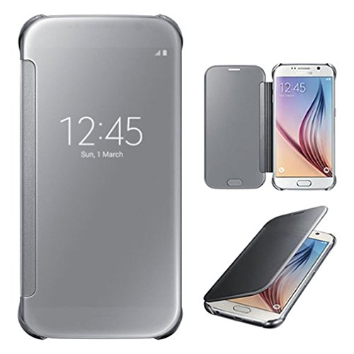 Galaxy S6 Edge, LEKESI Luxury Mirror Clear View Case Cover All-around Protection For Samsung Galaxy S6 Edge (Silver)